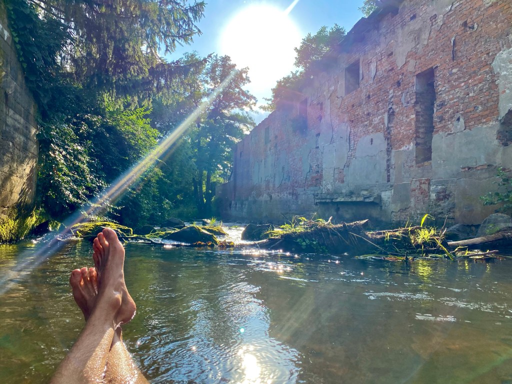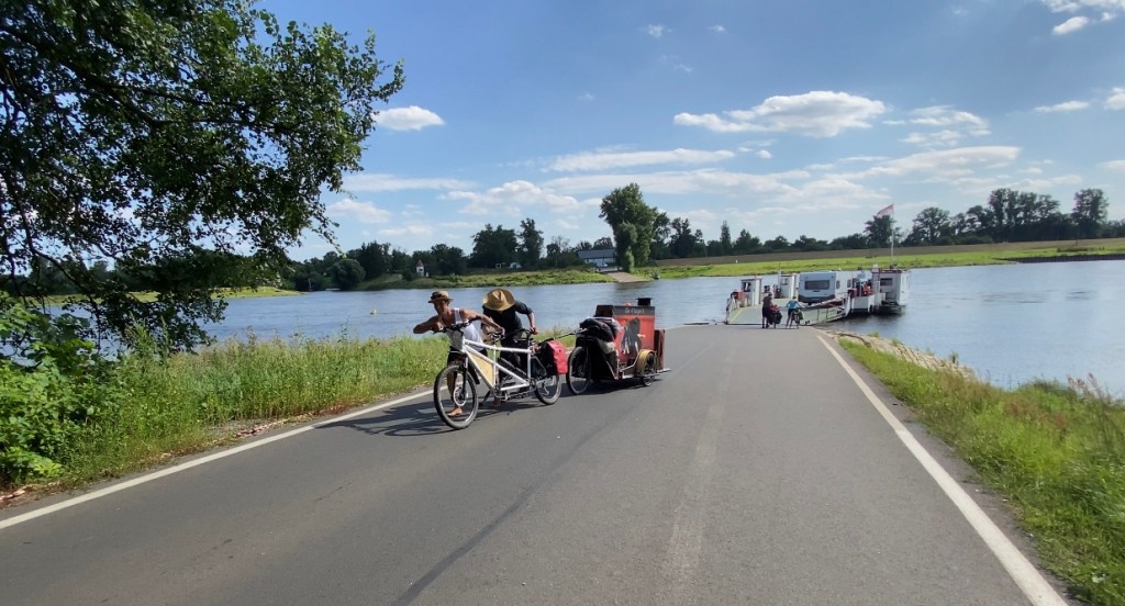 Nach einer schönen Pause, an einer Brücke über einem kleinen sauberen Fluss, in dem zumindest ich mich abgekühlt hatte, fuhren wir weiter zur Fähre nach Barby und mussten uns schon wieder einmal beeilen, denn die letzte Fähre sollte schon in einer halben Stunde ablegen und wir hatten noch ein paar Kilometer vor uns.